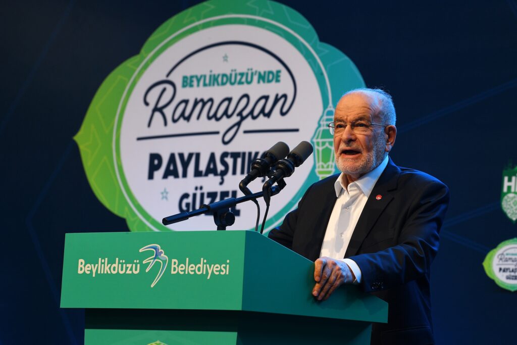 “Liderler olarak Halil İbrahim sofrasına oturduk. Halkımızı da adalet, eşitlik, hukuk, özgürlük ve hakça paylaşım için bu sofraya davet ettik. Milletimizin sofrasında sadece karınlar doymakla kalmıyor, bu sofrada birlik ve beraberliğimiz de güçleniyor. Bu sofrada açgözlülük yok, hırs yok, art niyet yok, kibir yok ama istişare var, dayanışma var, paylaşma var. Bu sofraya her oturan bilsin ki yanındakini de düşünür. Bu sofrada kimse lokmasını yutmadan ikinci lokmaya el uzatmaz. Aynı aşa kaşık salladığımız bu sofraya konan her şey nimetten görülür, israf edilmez. Milletimiz için kurduğumuz bu Halil İbrahim Sofrası birliğin ve sürekliliğin sofrasıdır. Dayanışmanın, paylaşmanın, tütmeye devam eden ocakların ve süren yaşamın sofrasıdır. Bu sofra denkliğin ve eşitliğin sofrasıdır. Yozlaşma, savurganlık, eşitsizlik ve adaletsizlik bu sofrada kendisine yer bulmaz. Bu sofranın bereketi aynı zamanda ülkemizin de bereketidir. Değer odaklı yaşam da bu sofrada filizleniyor dostlarım. Bu filizler fidan olacak, sonra çiçek açacak ve inanın baharların en güzeline hep birlikte kavuşacağız. Bu güzel ülkede gerilimin yerini huzur, çatışmanın yerini barış ve anlayış, düşmanlığı yerini ise kardeşlik alacak. Bir arada yaşama kültürümüz, tüm dini, etnik ve mezhepsel farklılıkları, çatışma unsuru haline getiren kirli siyasete galip gelecek. Mübarek Kadir Gecesi’nde bu güzel iftarı düzenleyen ve burada buluşmamıza vesile olan Beylikdüzü Belediyesi’ne ve değerli başkanı Mehmet Murat Çalık’a, yıllar evvel bu geleneği burada başlatan sevgili dostum, arkadaşım Ekrem Başkan’a yürekten teşekkür ediyorum. Allah ettiğimiz tüm duaları kabul etsin” diye konuştu.