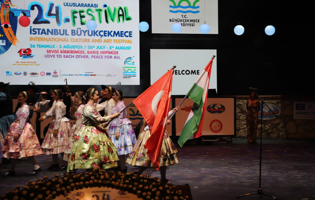 Uluslararası İstanbul Büyükçekmece Kültür ve Sanat Festivali’ne katılan Macaristan Halk Dansları Grubu sahne sergiledikleri performansın ardından Türkçe okudukları “İzmir Marşı” ile amfi tiyatroyu dolduran binlerce izleyici tarafından ayakta alkışlandı.
