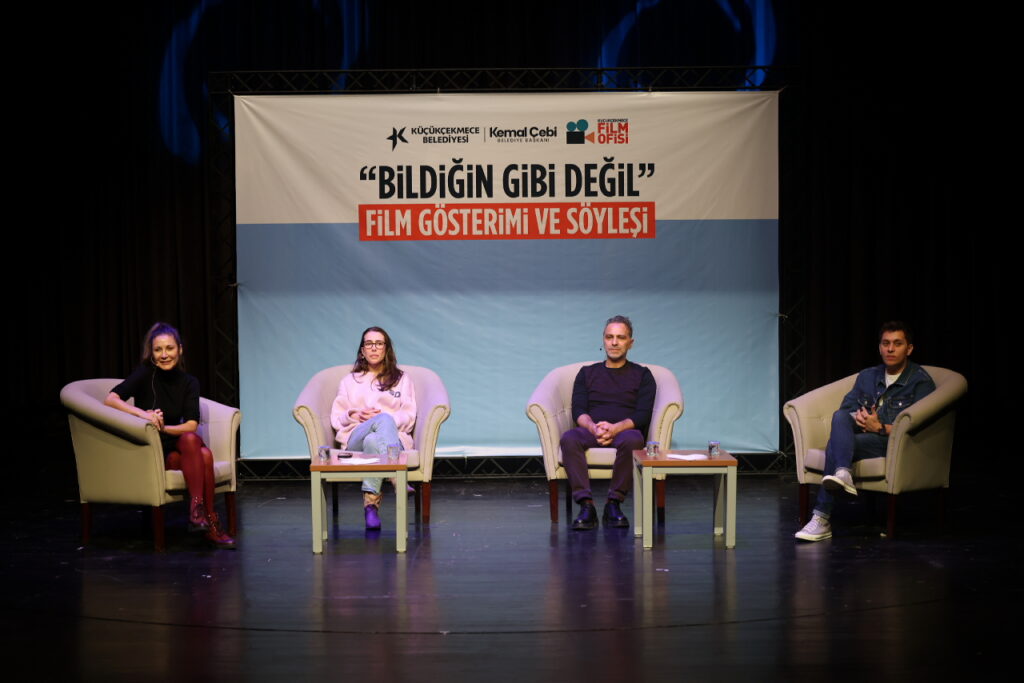 İstanbul Film Festivali’nden “En İyi Senaryo”, “En İyi Erkek Oyuncu”, “En İyi Kurgu” ve “Jüri Özel Ödülü” ile dönen “Bildiğin Gibi Değil” Film Ekibi, Küçükçekmece Belediyesi Film Ofisi’nin düzenlediği Sinema Söyleşilerine konuk oldu. Söyleşiye, filmin yönetmeni Vuslat Saraçoğlu, başrol oyuncusu Serdar Orçin ve filmin yapımcısı Mehmetcan Ünlü katıldı. Cennet Kültür ve Sanat Merkezi’nde gerçekleştirilen söyleşi öncesi oyuncularla bir araya gelen Küçükçekmece Belediye Başkanı Kemal Çebi, katılımlarından dolayı konuklara teşekkür etti.