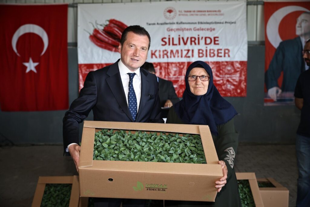 Silivri Belediye Başkanı Bora Balcıoğlu, Silivri İlçe Tarım ve Ormancılık Müdürlüğü’nün Sayalar Mahallesi’nde düzenlediği kırmızı biber fidesi dağıtım programına katıldı.