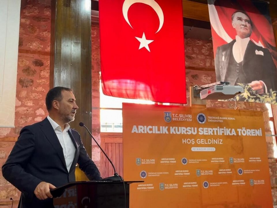 Silivri Belediyesi Tarımsal Hizmetler Müdürlüğü ve Tekirdağ Namık Kemal Üniversitesi iş birliğiyle hayata geçirilen Arıcılık Kursunda, eğitimlerini tamamlayan 123 kursiyer için sertifika dağıtım töreni düzenlendi. Törende konuşan Başkan Yılmaz, “Silivri Belediyesi olarak, uygulamalı arıcılık kursunun verildiği ender belediyelerden bir tanesiyiz. Ayrıca tarımla ilgili yapmış olduğu yatırımlarla da Türkiye’de kapsamlı çalışmalara imza atan bir belediyeyiz.” dedi.