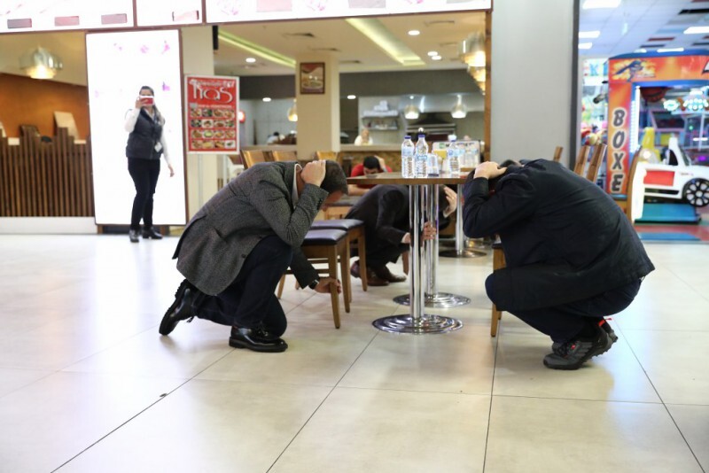 AFAD koordinasyonunda Düzce Depremi’nin 23. yıl dönümü nedeniyle düzenlenen “Deprem Anı Ülke Tatbikatı” Silivri genelinde de icra edildi. Saatler 18.57’yi gösterdiği sırada başlayan tatbikata bir AVM’de katılan Kaymakam Tolga Toğan ve Başkan Volkan Yılmaz, vatandaşlarla birlikte “çök-kapan-tutun” hareketini yaptı.