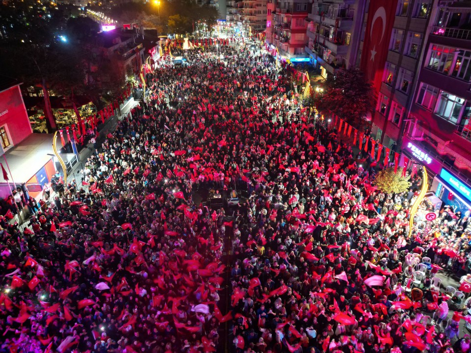 Ellerindeki Türk bayraklarıyla Kıraç’ın şarkı ve marşlarına eşlik eden vatandaşlar, Cumhuriyet kutlamalarında büyük coşku yaşadı.