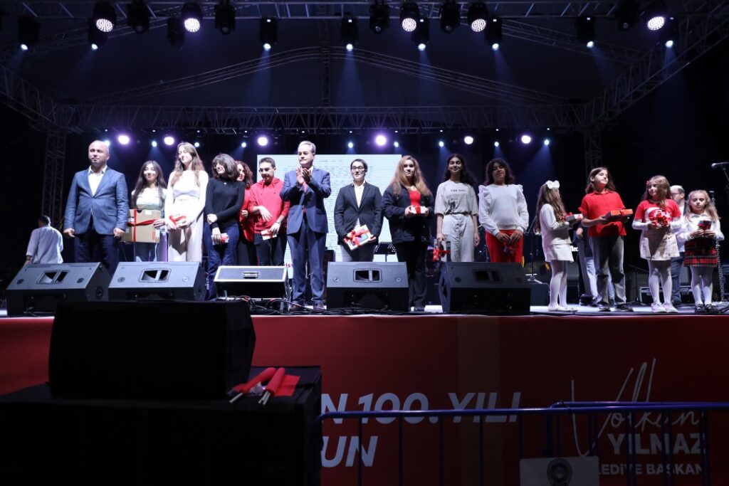 Konser alanında bir konuşma yapan Silivri Belediye Başkanı Volkan Yılmaz, “Dünyanın en kıymetli toprakları olan aziz vatanımız üzerinde, bu büyük milletin cumhuriyet idaresiyle hür, bağımsız, bir ve bütün olarak dünya durdukça yaşayacağına olan inancımı sizlerle paylaşmak istiyorum. Bu kıymetli toprakları bize vatan yapan başta Gazi Mustafa Kemal Atatürk ve onun silah arkadaşları olmak üzere, bu kıymetli vatanın bölünmez bütünlüğünü, milletin huzur ve sükûnunu sağlayan ve bu ulvi gaye için toprağa düşerek şehitlik mertebesine ulaşan bütün şehitlerimizi ve gazilerimizi rahmetle anıyor ve manevi huzurlarında saygıyla eğiliyorum. Bilindiği üzere Mustafa Kemal Paşa, 19 Mayıs 1919’da çıktığı Samsun’dan Amasya’ya geçmiş, 22 Haziran’da Amasya Genelgesini yayınlamıştır. 23 Temmuz’da Erzurum, 4 Eylül’de Sivas Kongrelerini toplayarak milleti ve Anadolu’yu örgütledikten sonra 27 Aralık 1919’da Ankara’ya geçerek, Millet Meclisinin Ankara’da toplamasını sağlamıştır. 23 Nisan 1920’de toplanan Millet Meclisinde, yeni Türk Devleti kurulmuş ve tüm dünyaya ilan edilmiştir. Yeni Türk Devleti kurulduğunda, Sevr’i bahane eden Avrupalılar, Yunanlıları ikna ederek Anadolu’nun batısının Yunanlılar tarafından işgalini, güneyinin İngilizler, İtalyanlar ve Fransızlar, Doğu Anadolu’nun ise Ermeniler tarafından işgalini sağlamışlardır. Bu milletin yok edilebileceğini fakat asla tutsak yaşatılamayacağını bilmeleri gerekenler, bu büyük devletin küllerinden bir Zümrüdüanka misali yeni bir devlet çıkaracağını hesap edememişlerdir. İşgal sonrasında, bütün Anadolu’da ve Rumeli’de, Müdafaa-i Hukuk cemiyetleri kurularak düşmana karşı direniş başlamıştır. Zor şartlar altında, topyekûn bir millet olarak verilen mücadeleler sonrasında, yurdumuz işgal güçlerinden arındırılmıştır. İsimsiz binlerce kahramanla birlikte, adlarını hayırla ve rahmetle anacağımız Nene Hatunlar, Halide Edipler, Kara Fatmalar, Şerife Bacılar, Gördesli Makbule Hanımlar ve Halime Çavuşlar gibi, kadın kahramanlar da kurtuluş mücadelemizde önemli rol oynamışlardır.