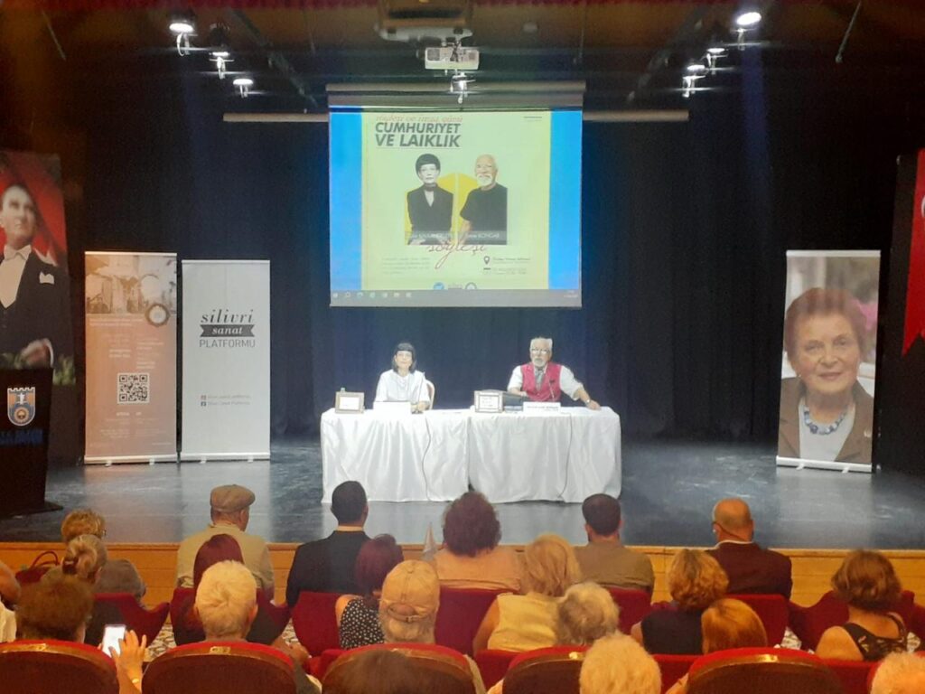Cumhuriyet Gazetesi yazarı Zülal Kalkanelen ve Toplum Bilimci Akademisyen Gazeteci Yazar Prof. Dr. Emre Kongar’ın katılımıyla “Cumhuriyet ve Laiklik” temalı söyleşi ve imza günü gerçekleştirildi. Etkinliğe Silivri Belediye Başkan Yardımcısı Tan Hüseyin Kıroğlu katıldı.